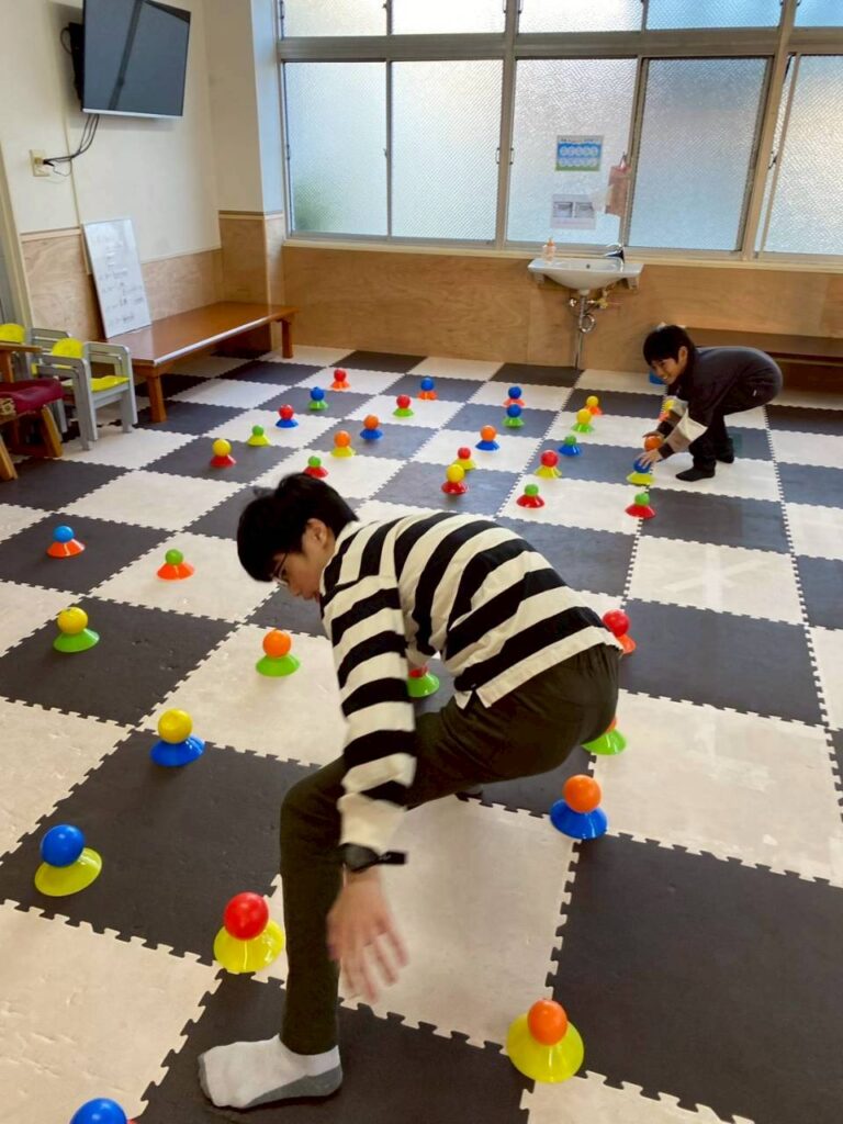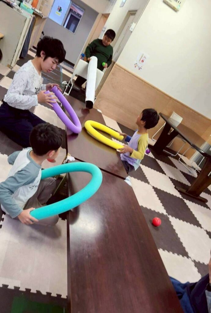 さて、放デイの活動では、ボール取りや色ならべボール、アハ体験を行いました!