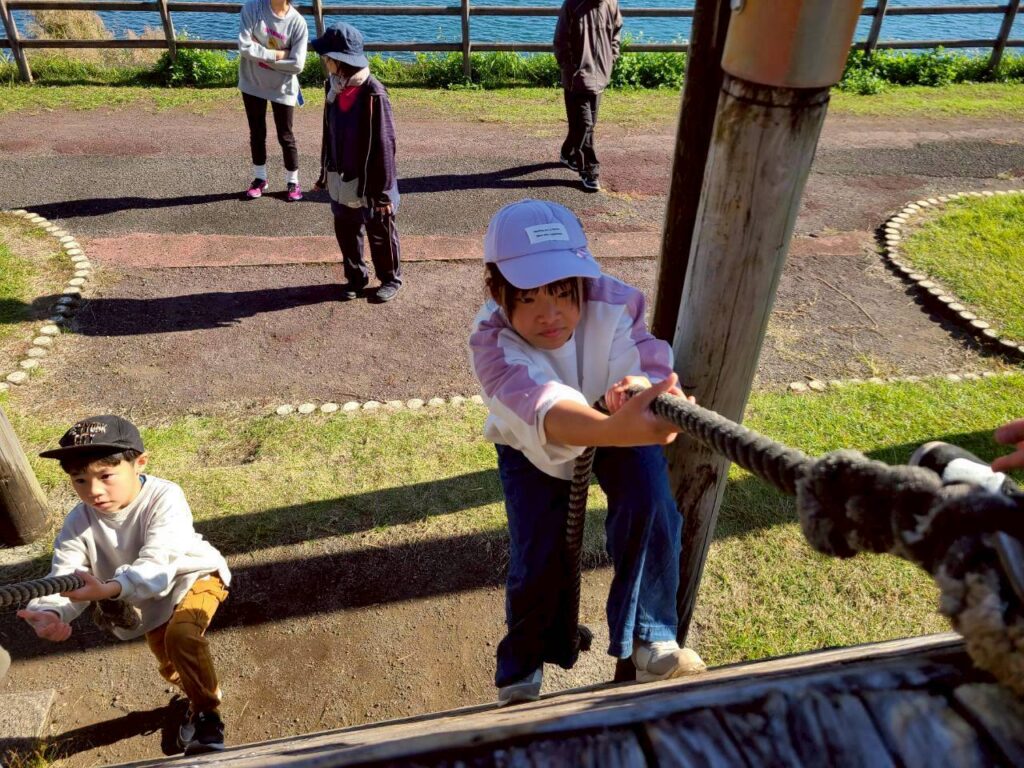 公園では、ロープを持って一生懸命に斜面を登る子、滑り台を繰り返し滑る子、みんなそれぞれ楽しむ姿がありました!