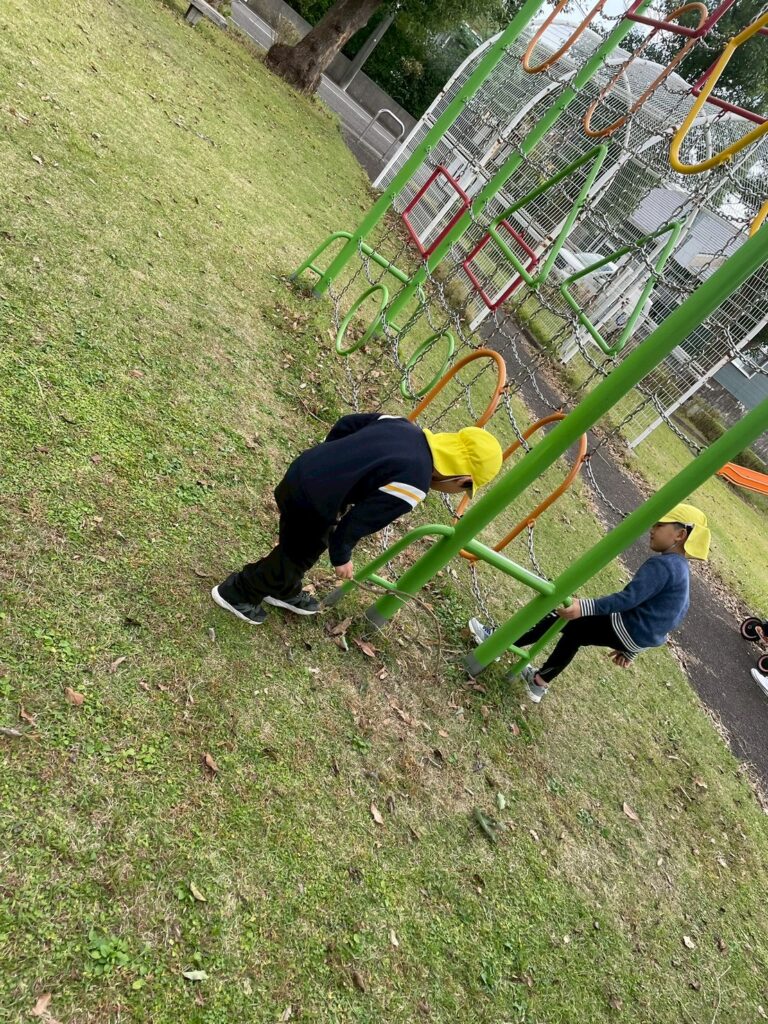 屋外活動では、公園で鬼ごっこや宝探しゲームをしました!少し肌寒い日でしたが、体をたくさん動かすことで、暖かくなっていきました😊 鬼ごっこでは、みんな全力疾走!ルールを守って、楽しく遊べました✨