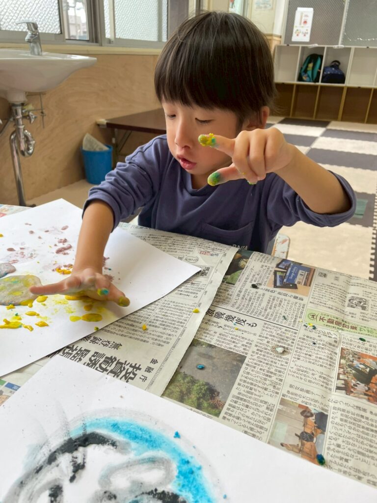 ザラザラした感触を楽しみながら、画用紙いっぱいに表現できました✨