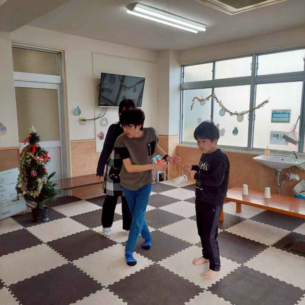 12月は音楽活動やクリスマス会を行いました!音楽活動では、ジャンケン列車をしたり、グループに分かれてミニ演奏会をしたりしました♪ ジャンケン列車では、1番最後のジャンケンで負けてしまった子が、悔しそうにする姿がありながらも、みんなで1列の電車になったことが楽しくて、最後はニコニコ顔でした✨ ミニ演奏会でも、それぞれ楽器を好きなように鳴らし、素敵な演奏会が繰り広げられていました(*^^*)