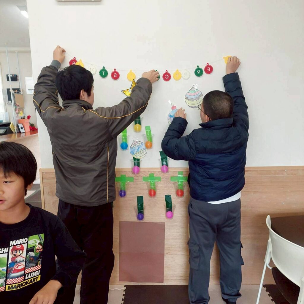 クリスマス会では、レクリエーションやケーキ作りをしました。