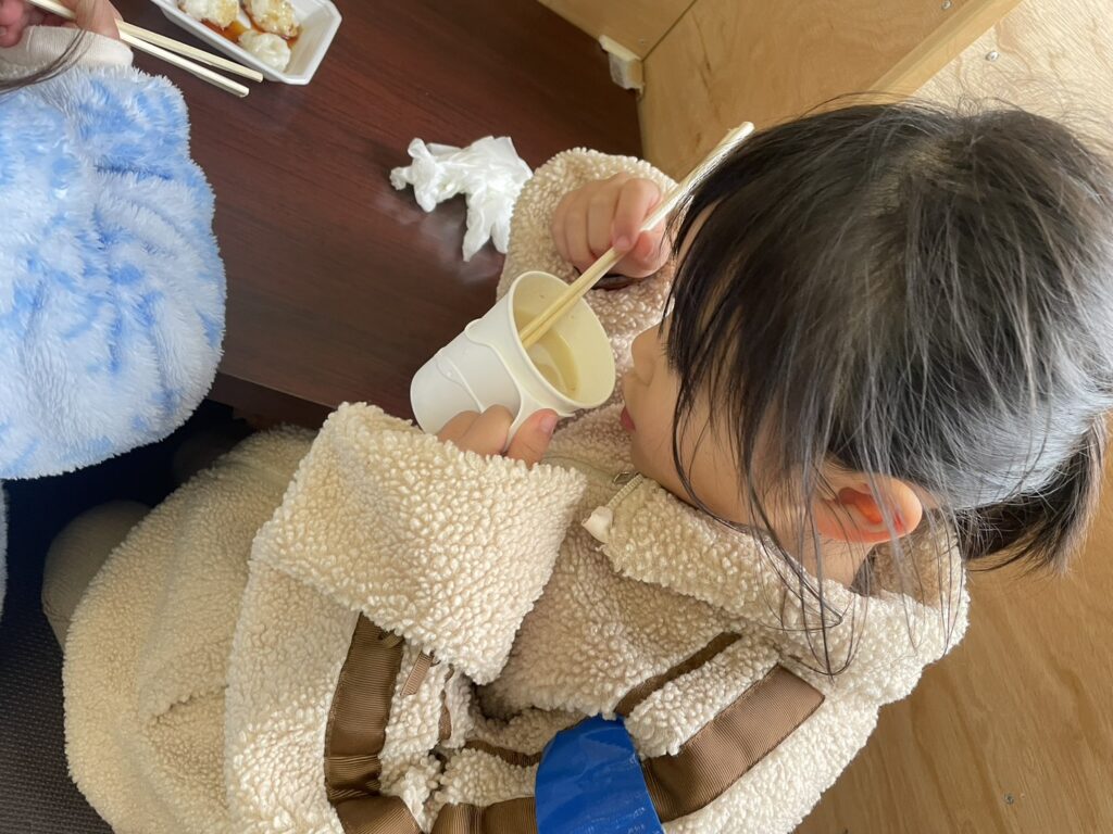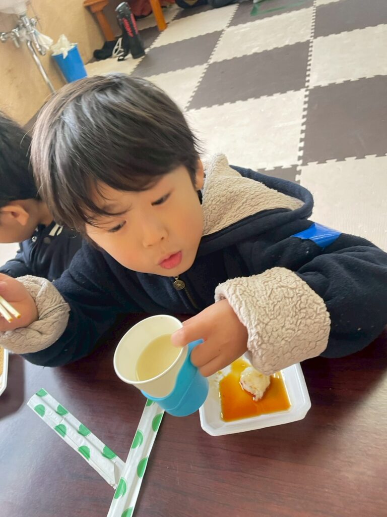 クッキングでは、冬のお野菜をたくさん使ったシチュー作りにも取り組みました✨ 白菜をちぎったり、ニンジンやジャガイモを切ったりしました😊 出来上がった温かいシチューを食べ、おかわりもたくさんしていました!