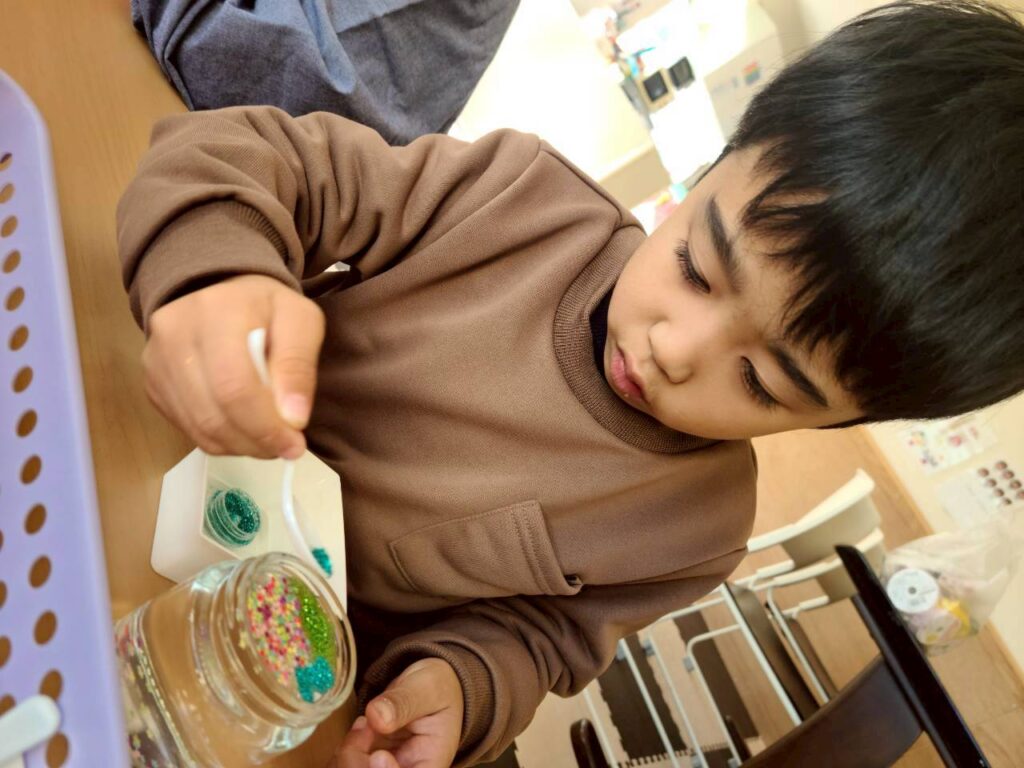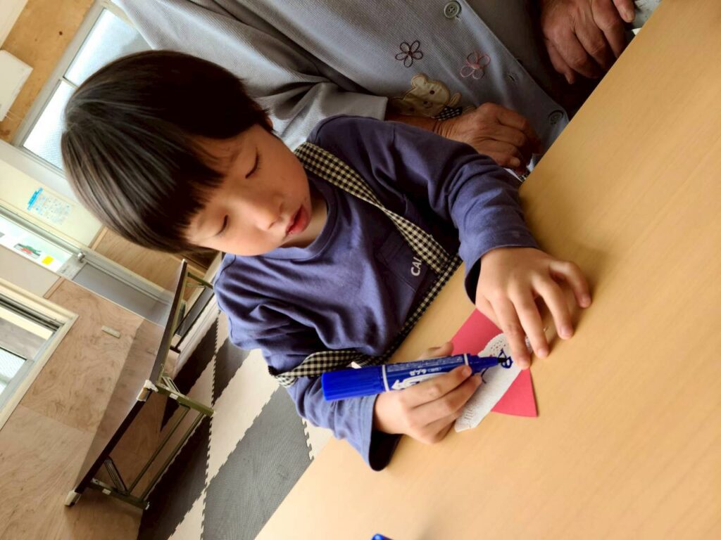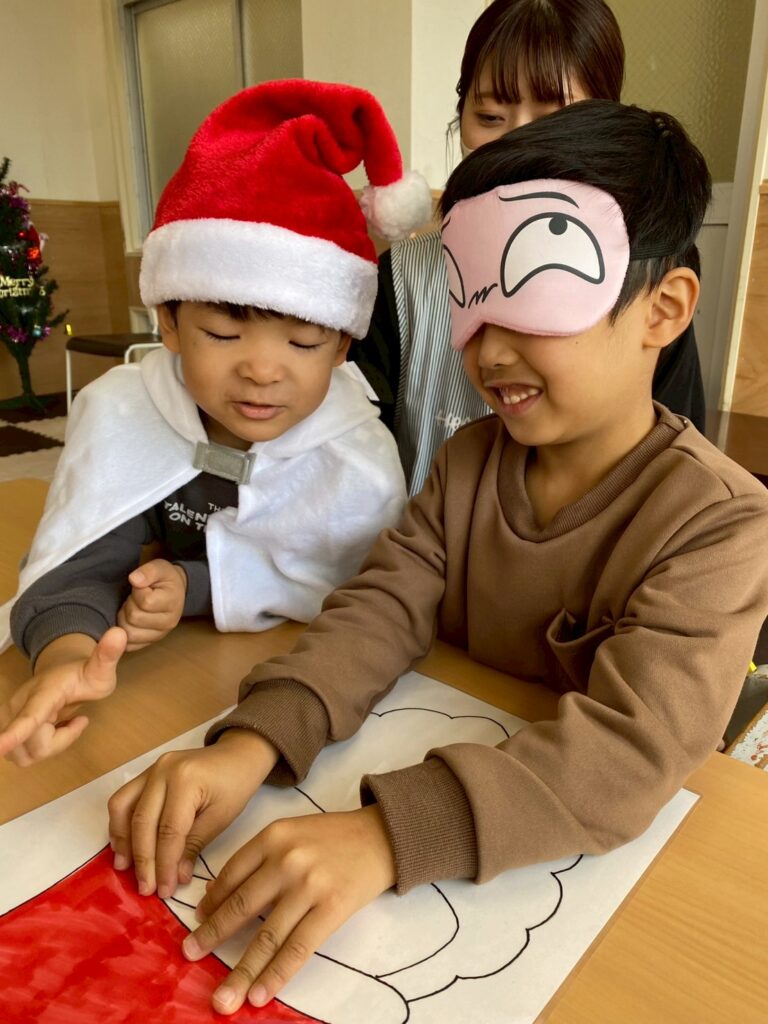 「サンタさんに○○もらう☺」とクリスマスを楽しみにしている会話が広がり、クリスマス制作にも意欲的に取り組んでいました。