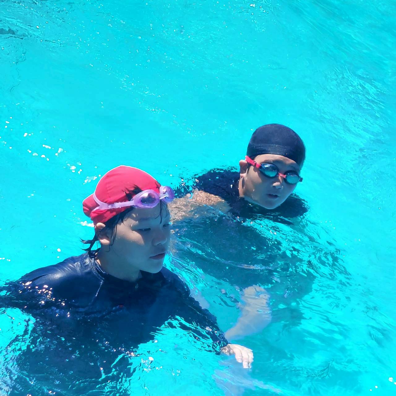 「見てて~」と水中腕立て伏せが始まったり、柱に上手に隠れながら水の掛け合いをしたり存分に楽しんでいました☺