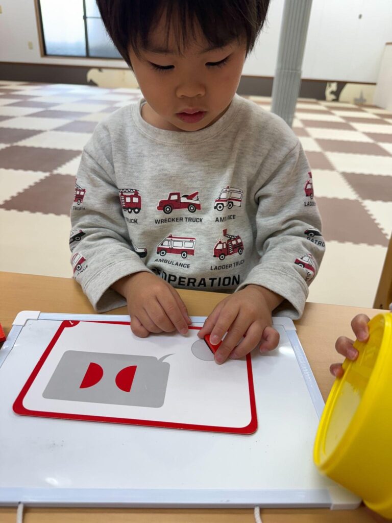 個別活動の時間には、一人ひとりの発達や興味に合わせた課題に取り組んでいます。